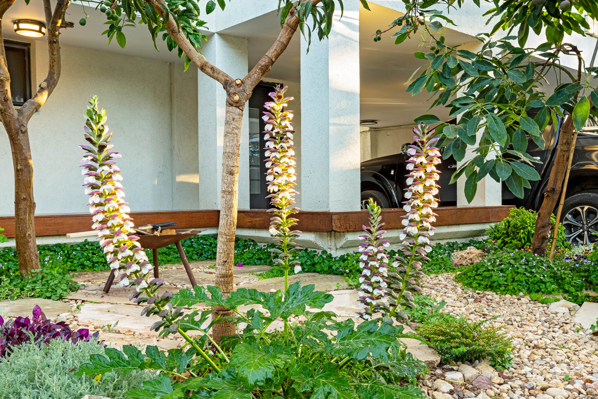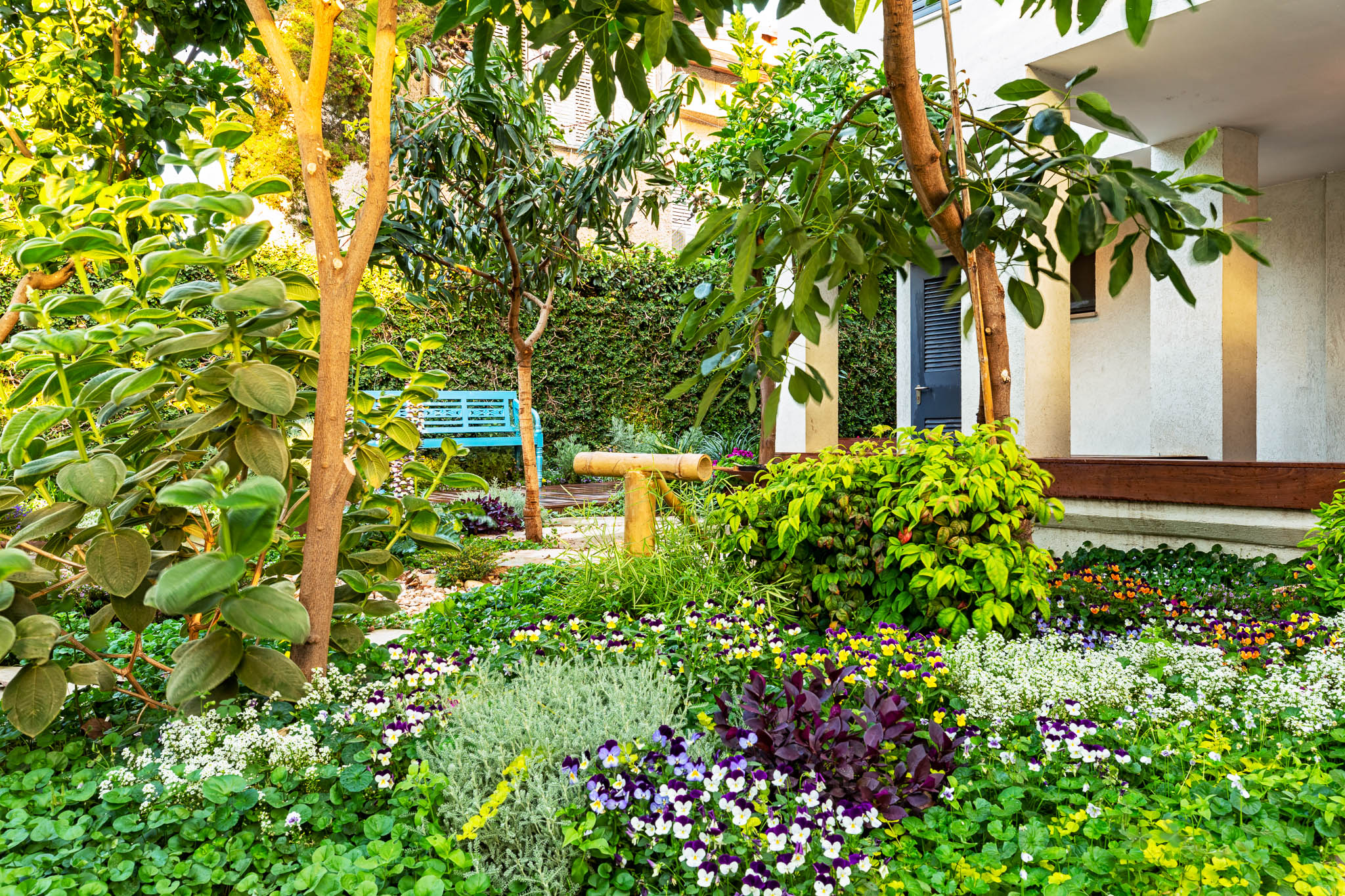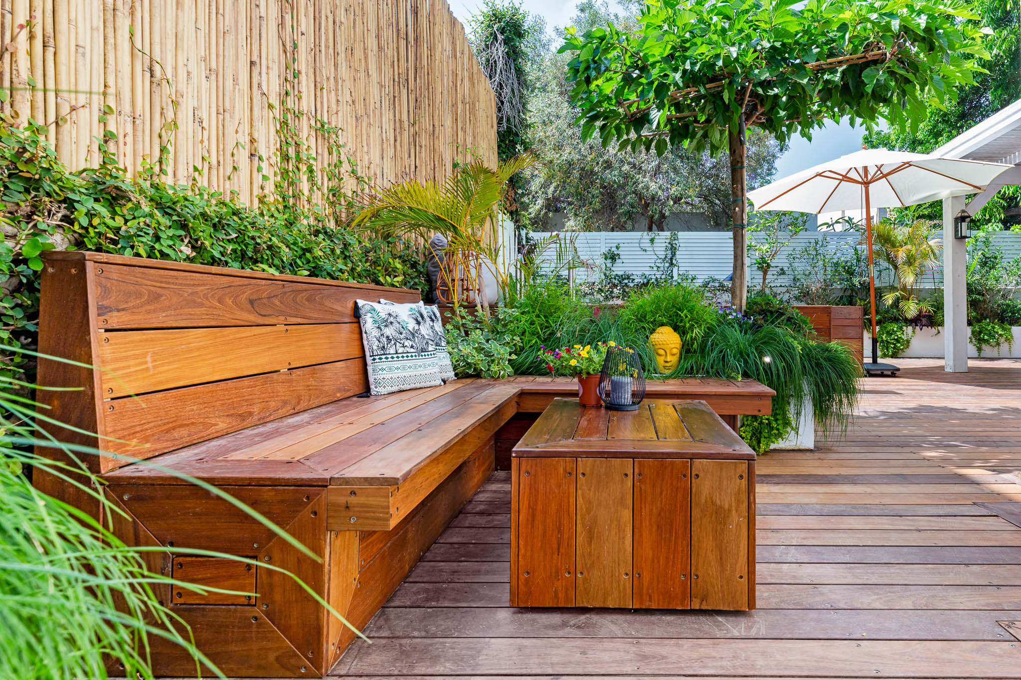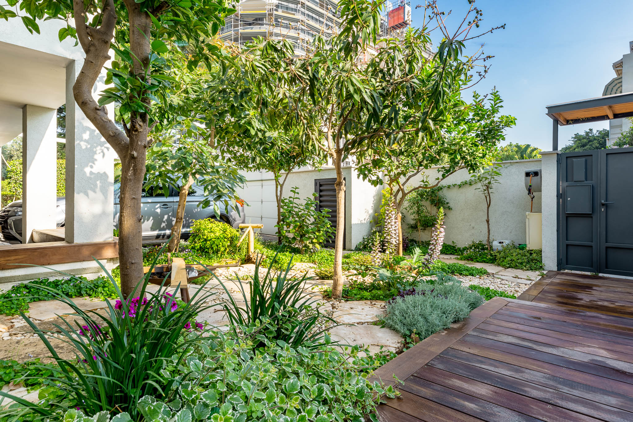 בתכנון הוספנו הרבה פינות ישיבה וצמחיה עשירה ומגוונת. כדי שהגינה תהפוך ליותר מזמינה ונעימה.